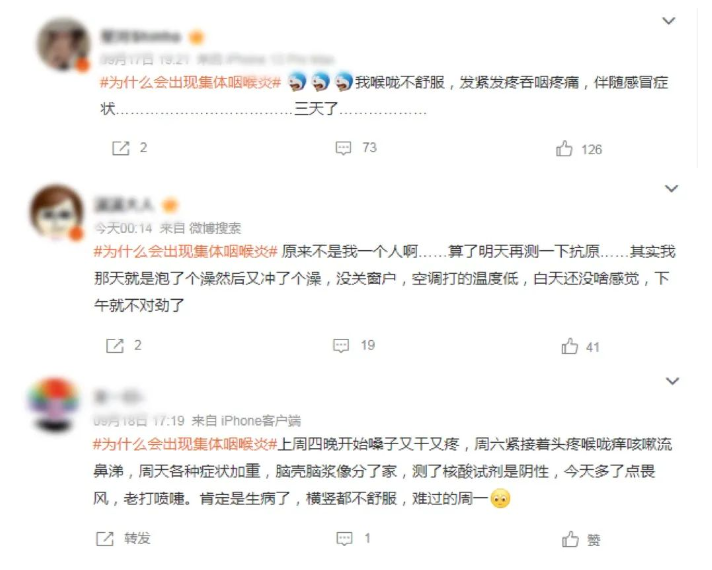 網(wǎng)友們紛紛留言:嗓子干、喉嚨疼、辦公室里咳嗽聲不斷、原來不止我這樣......